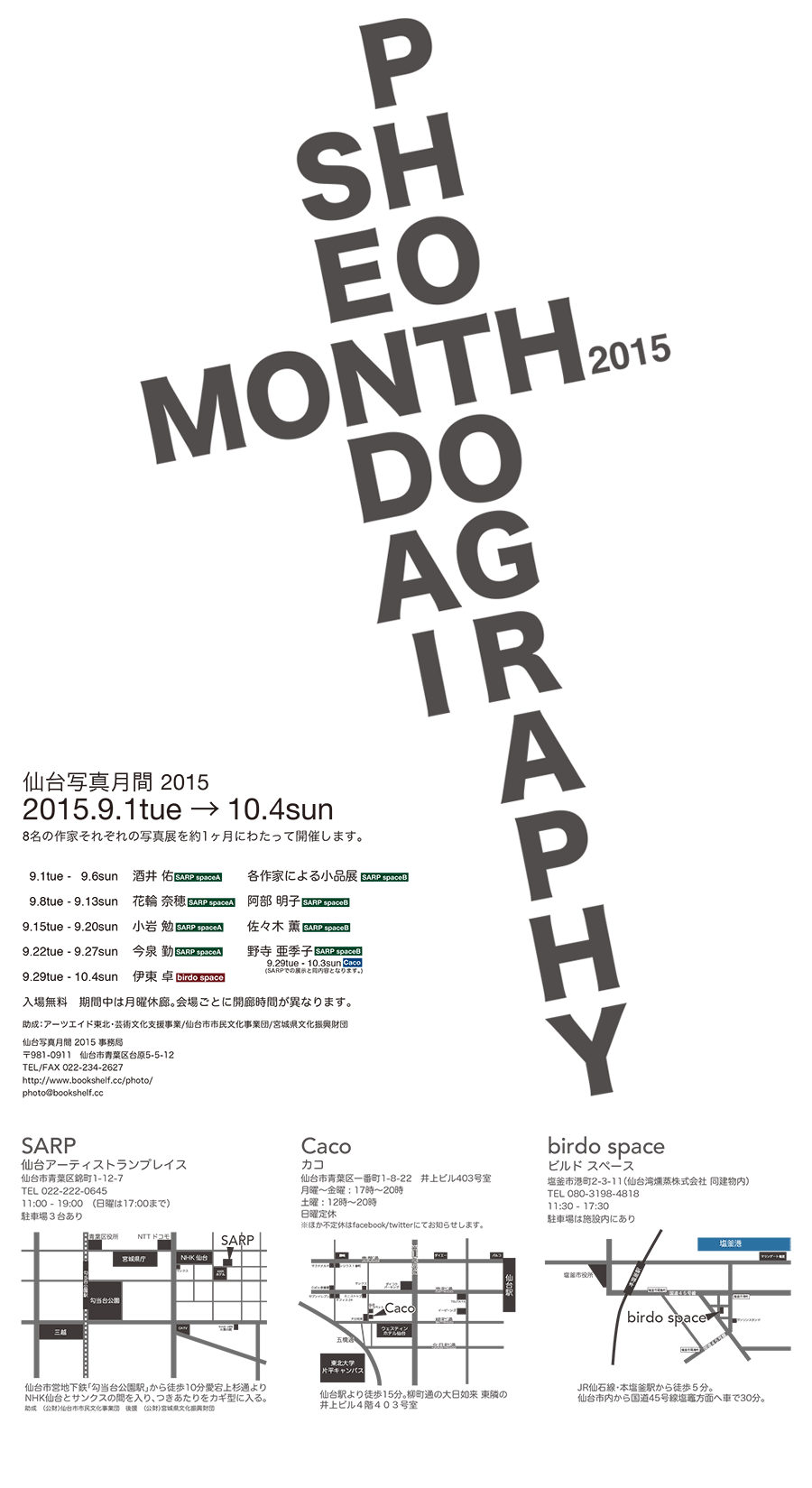 | 2012年 | 企画展「東北より」ニコンサロンbis 大阪 個展「綿毛のポートレート/擬態七食」仙台アーティストランプレイス |